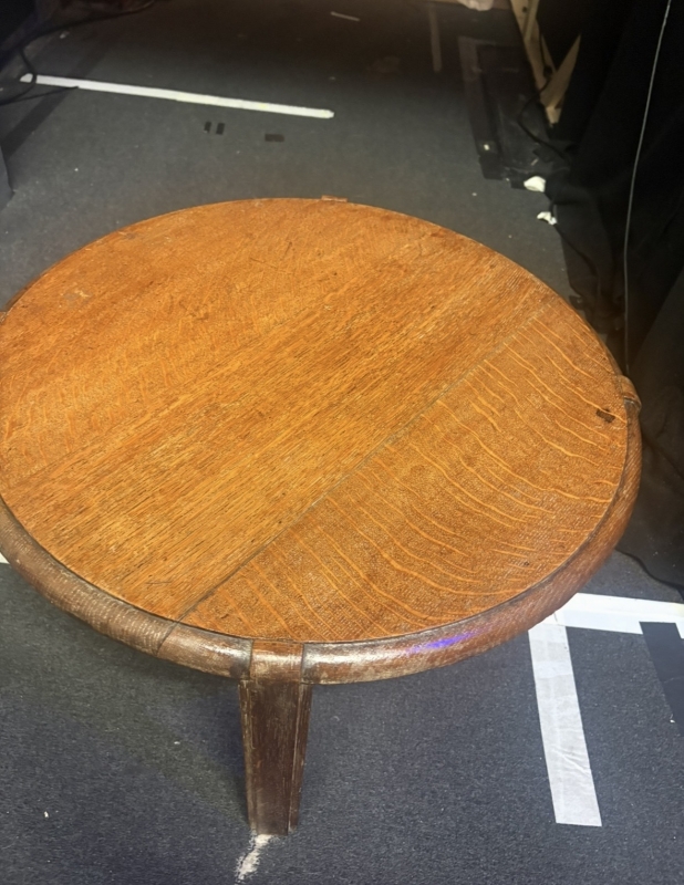 Small brown wooden period coffee table currently used in THE RAT TRAP at the Park Theatre. Coffee table is available to collect from West Ealing.