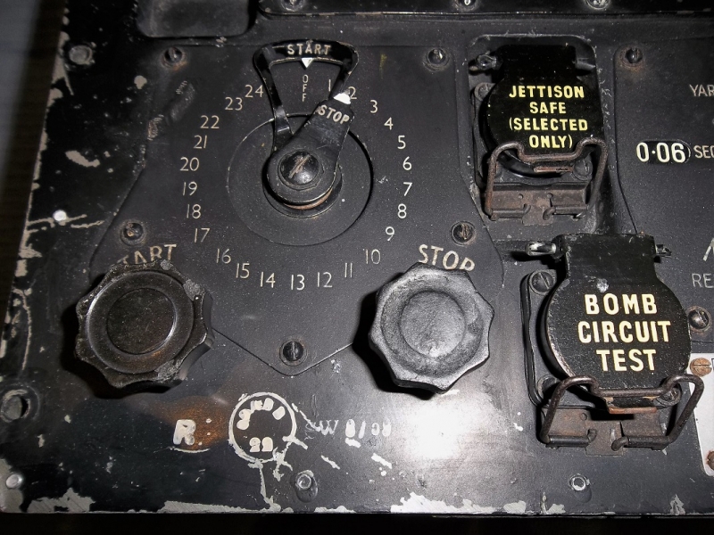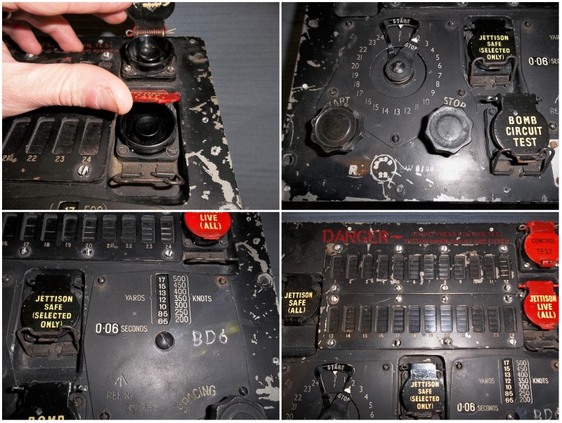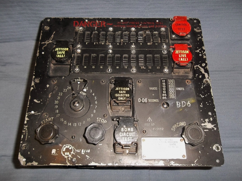 A bomb distributor panel from an RAF bomber aircraft (likely a Canberra).