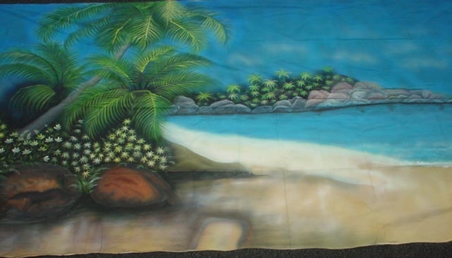 3 hand painted canvases which can run consequetively as one 60' x10 (18m x 3m) scene. Each one is a stand alone pc 6m x 3m.