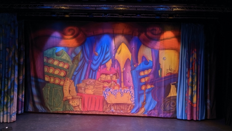 10m x 5.5m printed backdrop, this is printed on 115g scenic polyester - which can also double up as a gauze. there are vertical seams which are only visible when bleeding through. There is a Chain / conduit pocket for use with hirers own chain/conduit. top of the cloth has eyelets.
