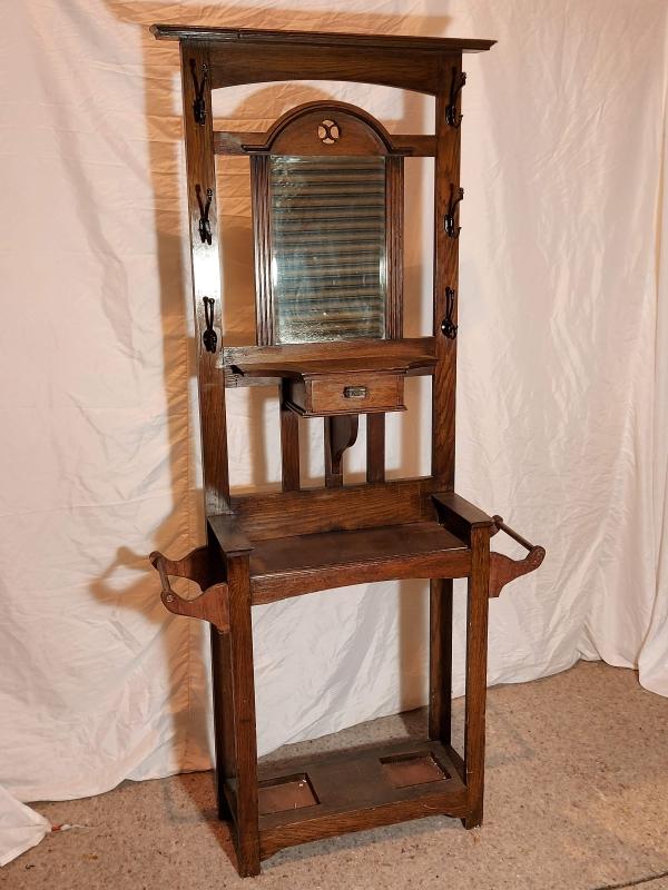 Wooden vintage coat stand Height= 2m Width widest 96cm Depth=28cm Please contact for hire information