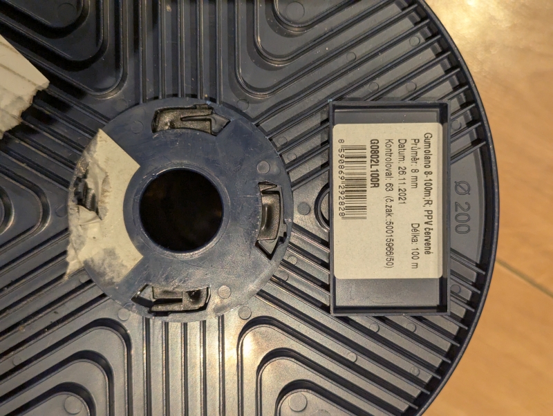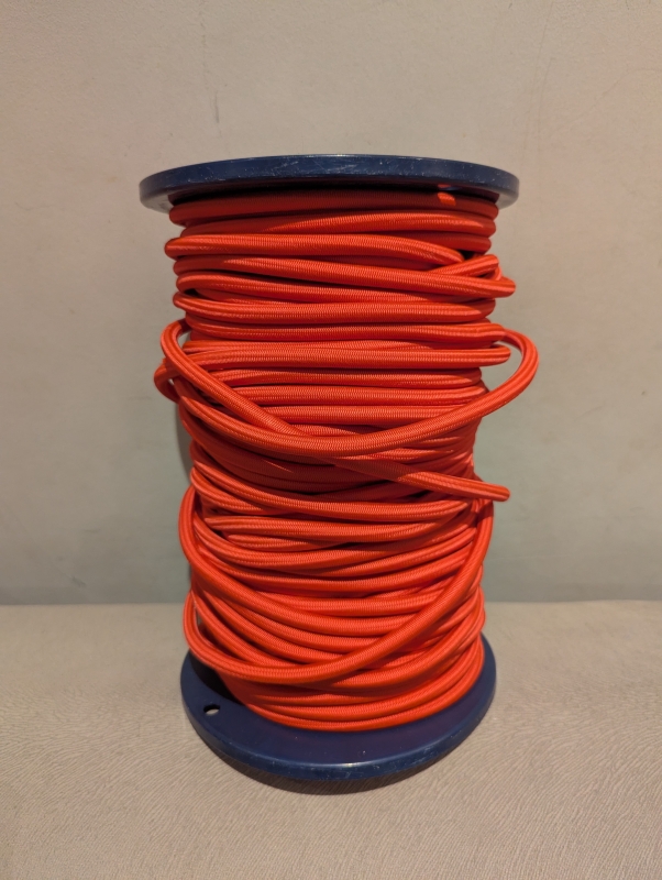 Five rolls of one hundred metres of red 8mm diameter bungee cord.