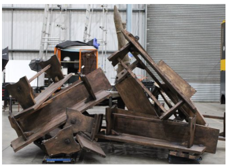 Large wooden pyre, benches attached together